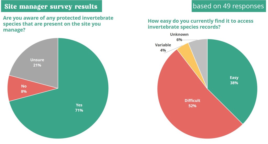 Site managers confirmed that they were aware of protected invertebrate species on the sites that they managed, but found it difficult to to access invertebrate species records (see Figure 5). This evidenced the need for more recording of invertebrates on these sites.