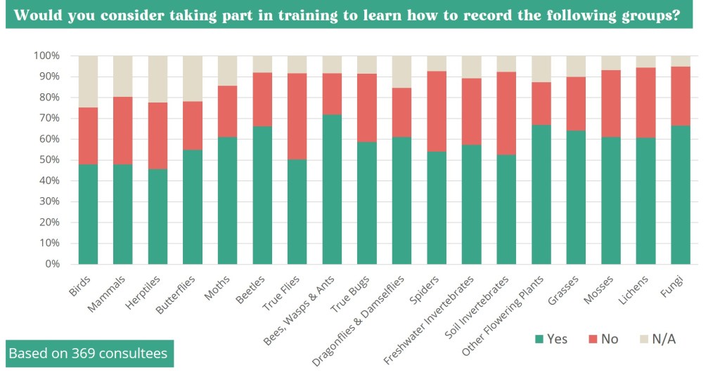 It was established that there was a reasonable level of demand for all species groups, with most of the lowest demand groups being those that are already relatively well covered through existing training programmes (likely due to the consultee’s greater experience in recording these groups) (see Figure 2).