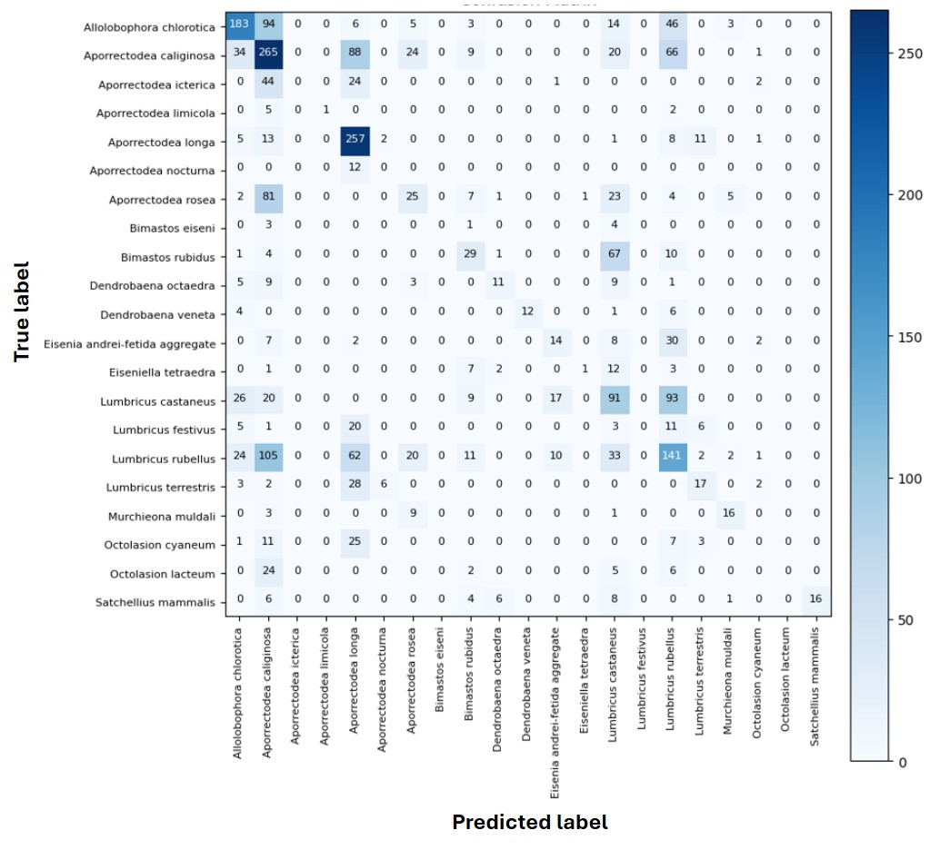 We also established issues with the algorithm using the whole image (rather than just the area with the earthworm) for species classification and recommendations were made for reducing or eliminating this issue.