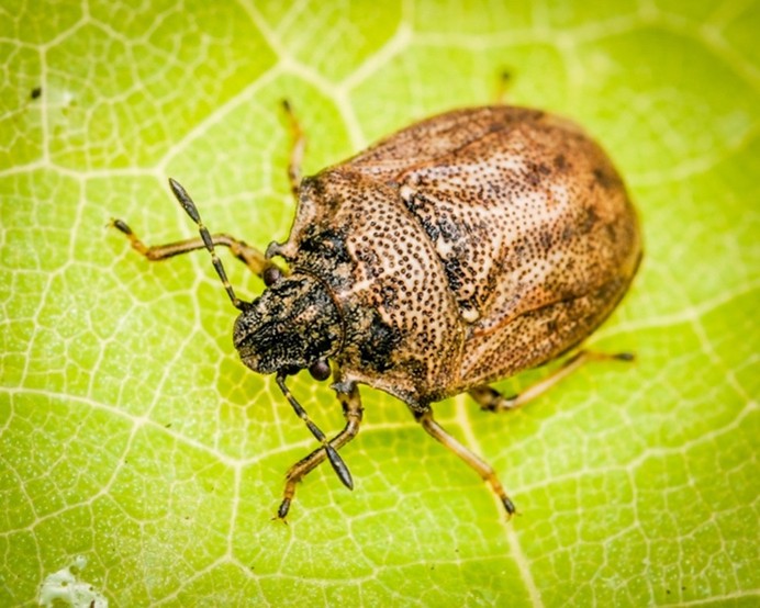 The group opted for an early lunch beneath the shade of a large English Oak (Quercus robur) at the margin of the Seven Acres field. In the time-honoured fashion of naturalists – who cannot take a break much longer than 10 minutes before getting back to looking at wildlife – some volunteers soon turned to the hedges behind the lunch spot where several insects were active. The Mirid plant bug Dryophilocoris flavoquadrimaculatus was common here, having likely descended from the oak above which is its host plant.