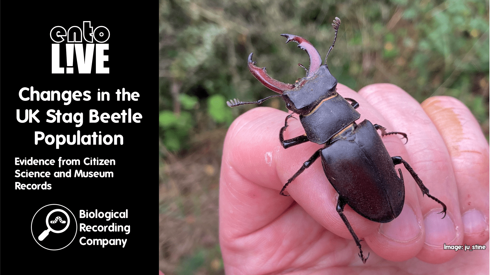 The Stag Beetle – Lucanus cervus – is the UK’s largest beetle. Males can be up to 75 mm long, including their impressive antler-like mandibles which they use to battle each other for access to females during breeding season. It is a truly beautiful species, inspiring amazement in all who are lucky enough to see one. Sadly, evidence from Europe suggests that stag beetle populations are declining across much of their range. But how are they faring in the UK? The south of England was historically recognised as a hotspot for the species. Is it still? A team of researchers from the People’s Trust for Endangered Species (PTES), the Natural History Museum (NHM) and the University of Cambridge set out to find an answer. Distribution records of stag beetles from 1998 to 2022 were analysed and compared with historic museum records going back over a century. The core range was found to have changed little overall, but has declined in the south west of England. Counts of adult beetles recorded together, although not systematic, indicate a worrying decline in abundance across the range. Phenology was also investigated. This webinar will share the findings from this research project, and discuss what can be done to ensure the long-term survival of this charismatic species.