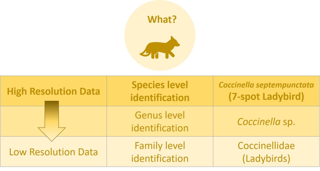 Note: whoever determines the identification (ID) should only classify organisms to a level they’re confident with.